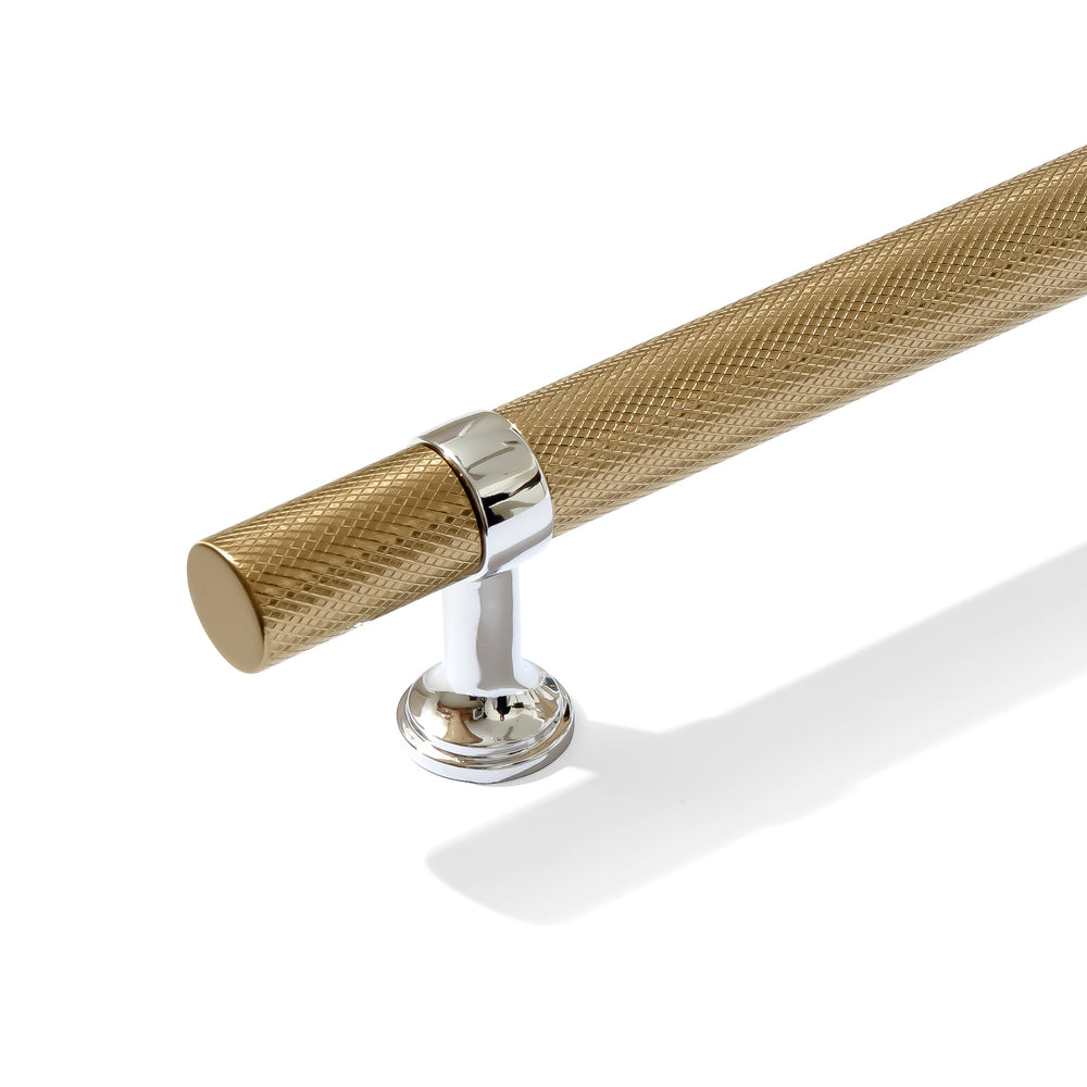 These beautiful dual-finish knurled polished chrome and champagne bronze contemporary t-bar cabinet knobs and drawer pulls are uniquely modern and will make a perfect design statement in any space. The wide range of sizes in both drawer pulls and appliance handles is unparalleled.