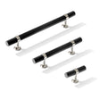 These beautiful dual-finish polished nickel and matte black knurled contemporary t-bar cabinet knobs and drawer pulls are uniquely modern and will make a perfect design statement in any space. The wide range of sizes in both drawer pulls and appliance handles is unparalleled.