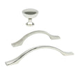 Polished Nickel "Tina" Drawer Knob and Drawer Pulls. The Tina collection offers a unique curved shape and style.
