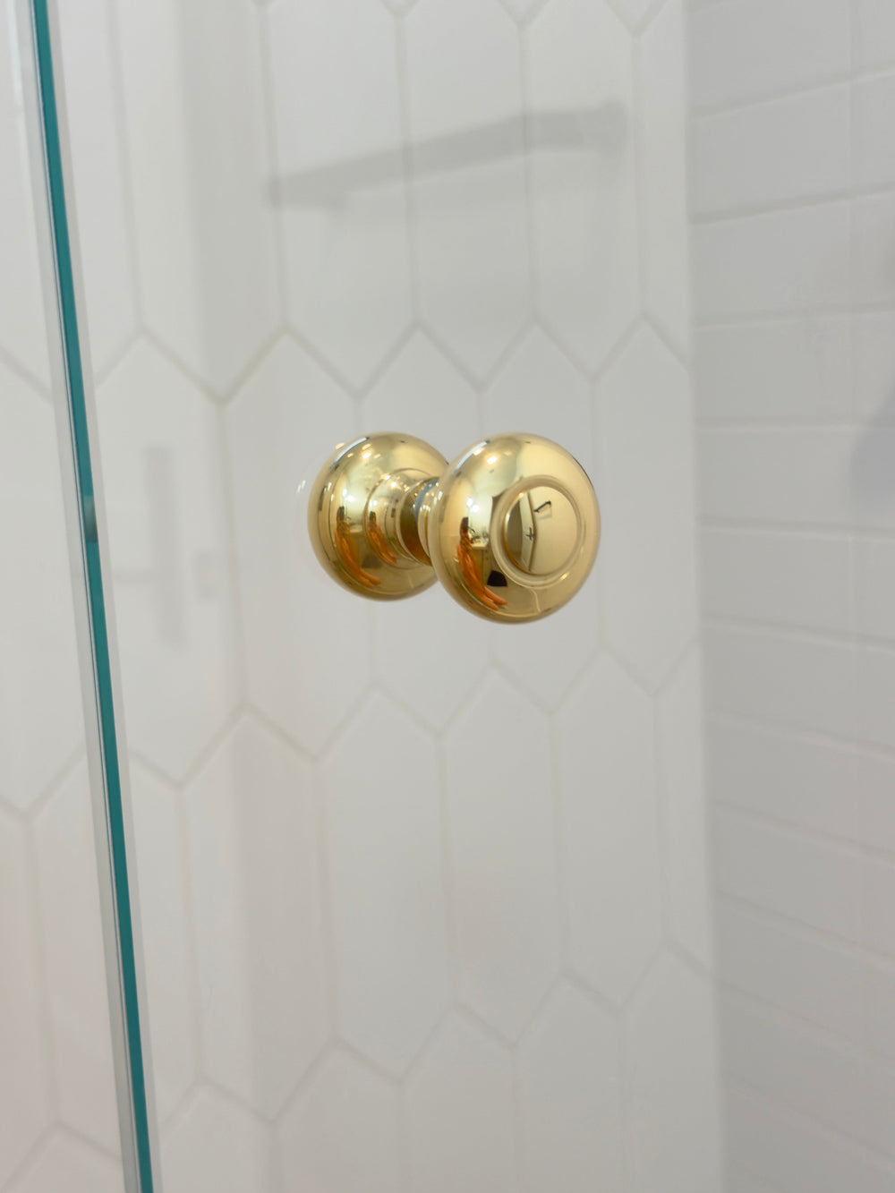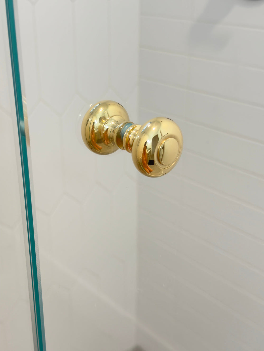Round Polished Unlacquered Brass "Fia" Round Glass Shower Knob . This item is a double-sided shower door knob suitable for glass shower door. A simple and classic design that works perfectly for shower doors. This item is listed here in polished lacquered brass which will not patina as well as an unlacquered brass which will start out as a polished brass look but will start to acquire patina.