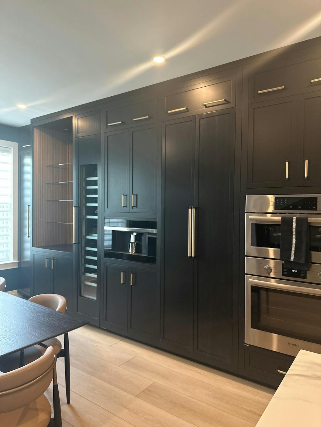 These beautiful matte black and champagne bronze dual-finish knurled bar cabinet knobs and drawer pulls are uniquely modern and will make a perfect design statement in any space.