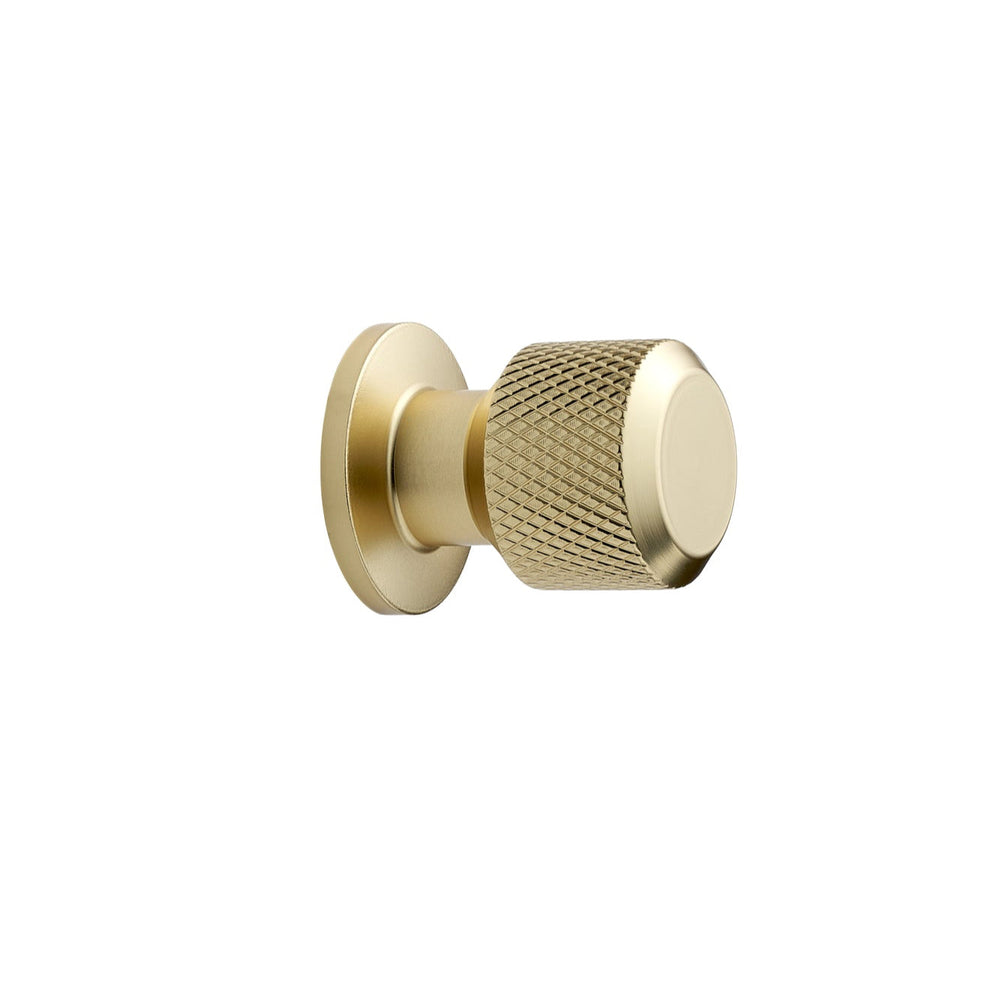 Brushed Gold "Manor" Knurled Cabinet Knobs and Drawer Pulls - Round Knob is backordered and will ship as soon as it is back in stock.